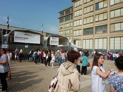 Mi sono recata al Salone l'ultimo giorno utile, lunedì 18 maggio 2015. Avevo comprato i biglietti in prevendita, online, quindi non ho dovuto perdere tempo ai punti di vendita biglietti del Lingotto, ma arrivare una mezzoretta prima dell'apertura si è rivelata comunque una mossa azzeccata.